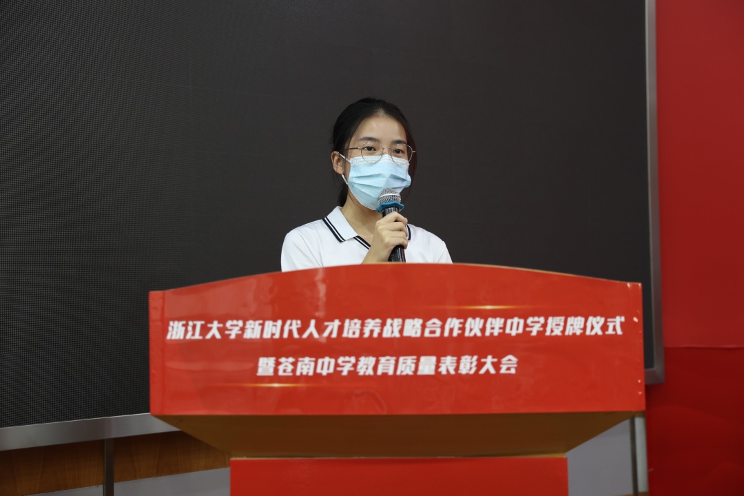 來自高三(1)班學(xué)生代表全體獲獎學(xué)生向天信儀表集團(tuán)有限公司和蒼南縣新華書店有限公司表示最誠摯的謝意。學(xué)生們獲得的不僅僅是物質(zhì)的幫助,更多是愛心的感知,精神的豐富,還有在雨中黑夜中翩翩起舞的勇氣。未來在世界的各個角落,他們定會用累累碩果回饋社會,用滿腔真誠鼓勵更多在雨中躊躇的舞者。